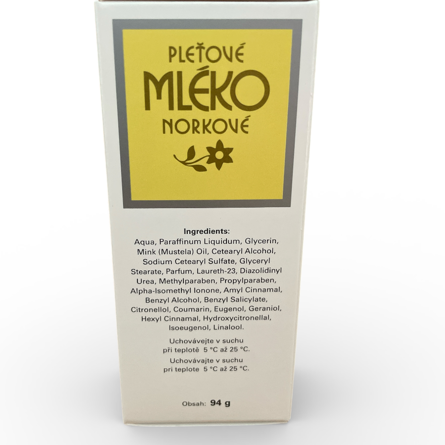 Mléčná emulze pleťového mléka norkového je určená k šetrnému čištění a ošetřování všech typů pleti. Obsah norkového oleje je vedle vynikajících čistících účinků i zárukou maximální šetrnosti a ochrany kůže.